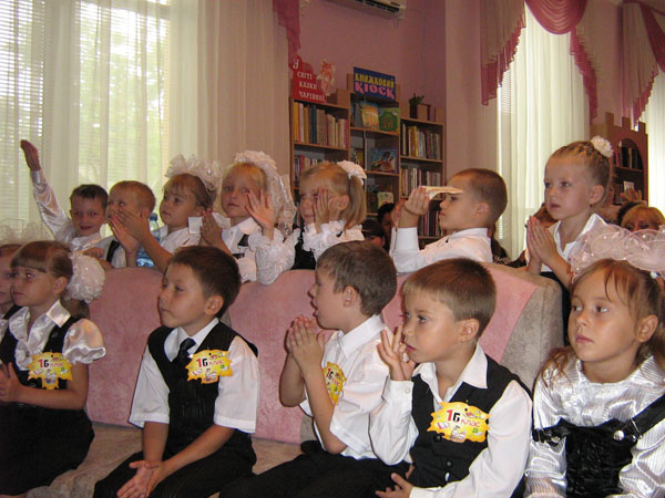 |   | 1 вересня у приміщенні молодшого відділу Обласної бібліотеки для дітей для першокласників та їх батьків школи №25 відбулося незабутнє свято, яке мало форму лялькової вистави. Завдяки веселим героям, Вовку та трьом поросятам, стара казка ожила на новий лад. Музична та повчальна, вона доступно і цікаво розповіла малечі про користь книги та бібліотеки. Ефектні ляльки, оригінальний сценарій, ігри та вікторини - усе це створило відповідний радісно-урочистий настрій. Правильно зібрати ранець допомогли відповіді на шкільні загадки, пролунав наказ першокласника - справжній дороговказ у Країну знань.  Н.М. Крижановська, зав. відділом обслуговування дошкільників та учнів 1-4 класів |