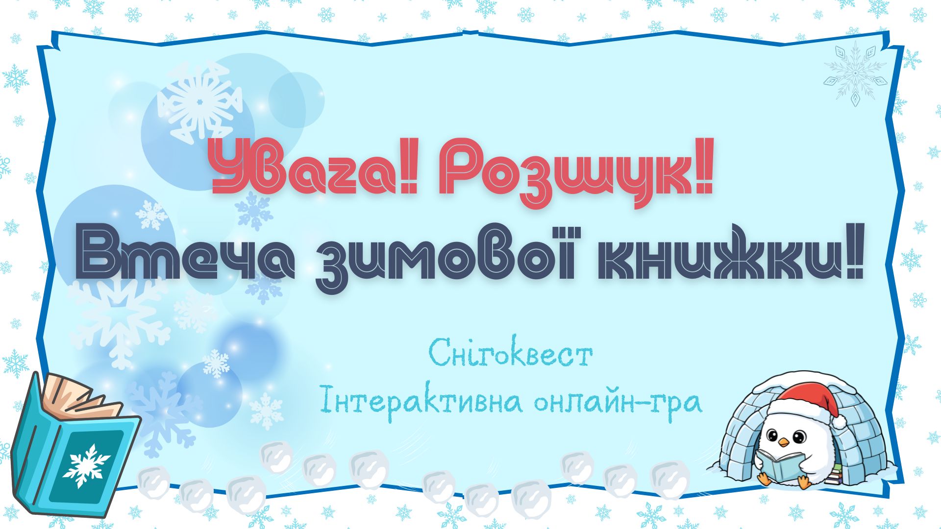 Зимові свята та канікули – це час, коли хочеться дива, тепла й казкових історій. Саме тому молодший відділ Херсонської обласної бібліотеки для дітей імені Дніпрової Чайки підготував для своїх маленьких читачів особливу онлайн-розвагу – інтерактивну гру «Увага! Розшук! Втеча зимової книжки».