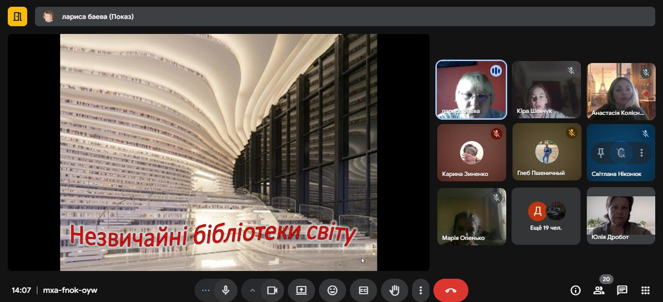 Скріншот екрану онлайн-заходу про бібліотеки світу