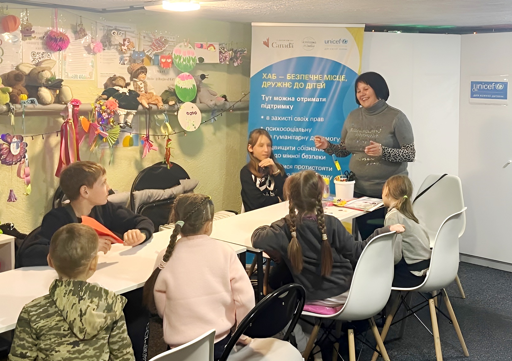 Фахівці Херсонської обласної бібліотеки для дітей імені Дніпрової Чайки разом із відвідувачами безпечного простору UNICEF м. Херсон перетворили зустріч на мистецький майданчик толерантності, де розмова про підтримку, уважність і взаємоповагу природно поєднувалася з творчою роботою та інтерактивними іграми.