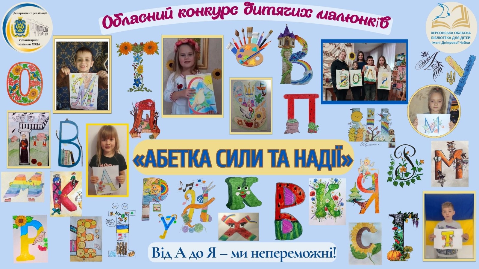 До Дня української писемності та мови Херсонська обласна бібліотека для дітей імені Дніпрової Чайки спільно з Департаментом реалізації гуманітарної політики Херсонської обласної державної адміністрації провела обласний конкурс дитячих малюнків «Абетка сили та надії». Конкурс став яскравим проявом патріотизму, любові до рідного слова та мистецтва, адже юні художники представили власне бачення української абетки, створивши оригінальні буквиці, сповнені символіки, барв і сенсів. Метою конкурсу було не лише відзначити талановитих дітей, а й підтримати формування у молодого покоління національної ідентичності, зберегти культурну спадщину українського народу, надихнути школярів до творчості навіть у складний час воєнного сьогодення.