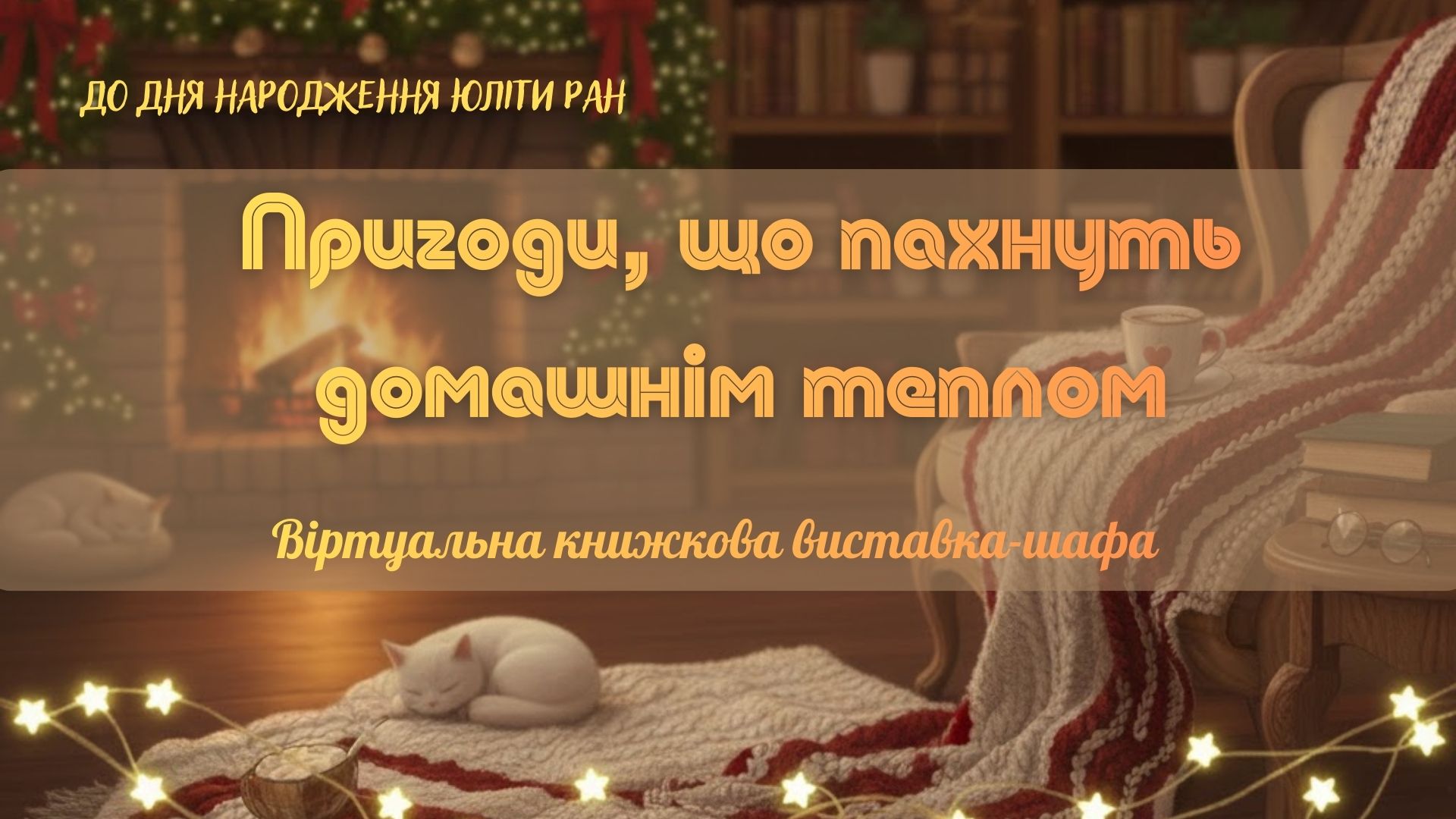 Особливо актуальними ці історії стають зараз, адже наближаються Різдвяні свята, довгоочікувані зимові канікули та затишні вечори у сімейному колі. Час, коли хочеться загорнутися у плед і поринути у світ справжнього дива. З цієї нагоди наша бібліотека створила особливий подарунок для авторки та читачів молодшого шкільного віку – віртуальну книжкову виставку-шафу «Пригоди, що пахнуть домашнім теплом».