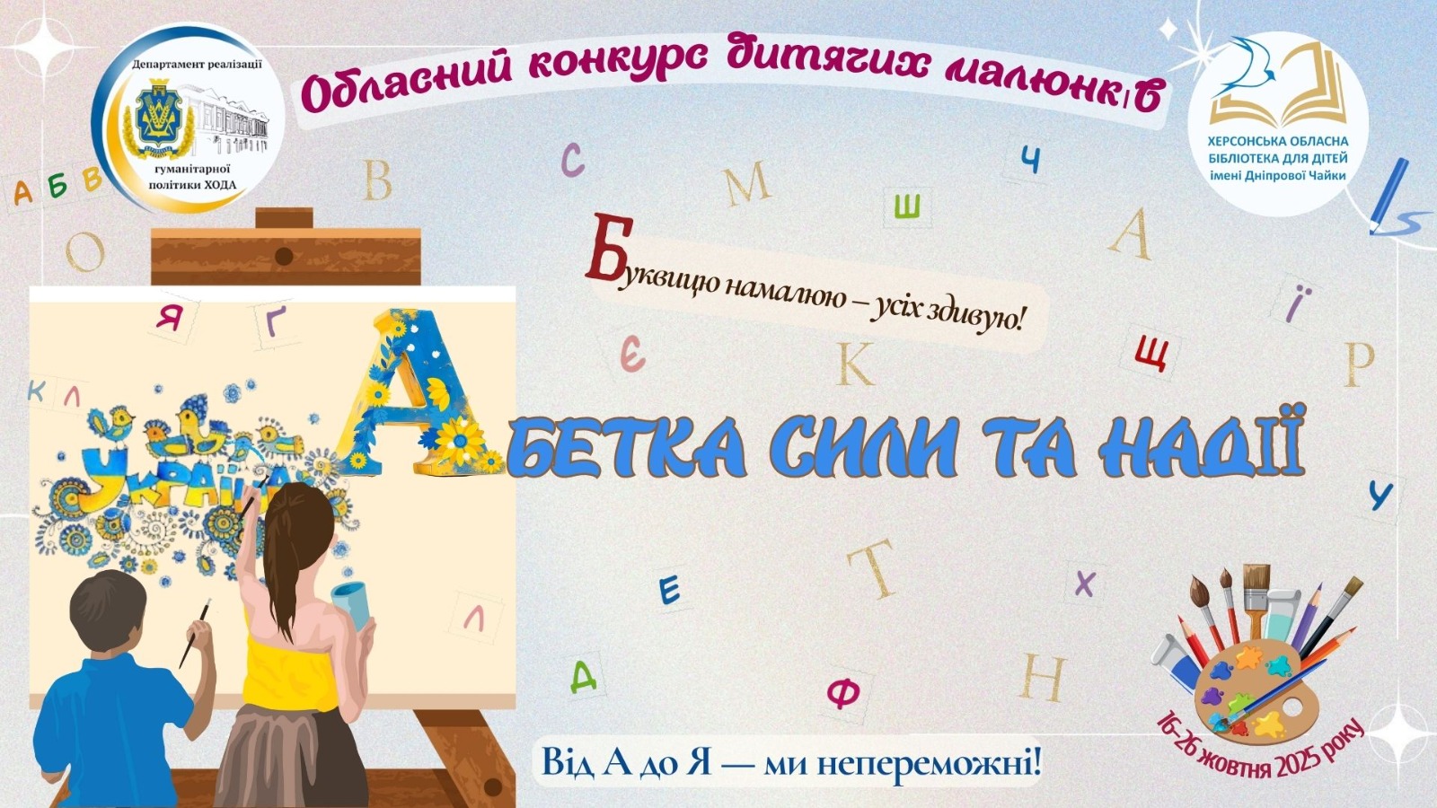 З нагоди Дня української писемності та мови Херсонська обласна бібліотека для дітей імені Дніпрової Чайки запрошує юних патріотів взяти участь в обласному конкурсі дитячих малюнків-буквиць «Абетка сили та надії».
