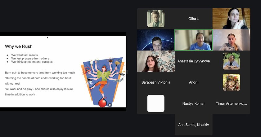 На черговій англійській практиці для молоді з Херсону та Маріуполя мова йшла про прокрастинацію – чому ми відкладаємо справи, поспішаємо їх виконувати, а іноді робимо і те, й інше!