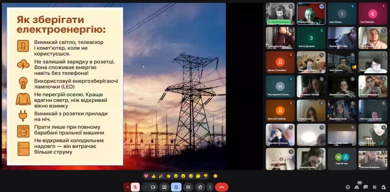 Напередодні Міжнародного дня енергозбереження працівники відділу обслуговування юнацтва та молоді Херсонської обласної бібліотеки для дітей імені Дніпрової Чайки провели для учнів 5-7 класів Херсонського ліцею №6 Херсонської міської ради пізнавальну годину корисних повідомлень під назвою «Енергія у твоїх руках». Метою заходу було привернути увагу дітей до важливості ощадливого використання енергоресурсів, сформувати у школярів розуміння, що кожен може зробити свій внесок у збереження енергії та довкілля.