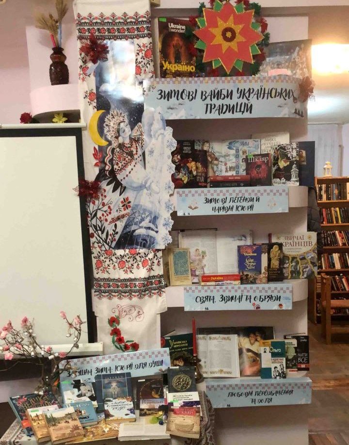 Фахівці відділу естетичного виховання Херсонської обласної бібліотеки для дітей імені Дніпрової Чайки запросили читачів поринути в цей світ тепла та обрядової магії через книжкову виставку-етнопростір «Зимові вайби українських традицій». У ній органічно поєдналися фольклорні джерела, етнографічні дослідження, класика та сучасна література – усе, що допомагає побачити українську зиму у всій її багатогранності.