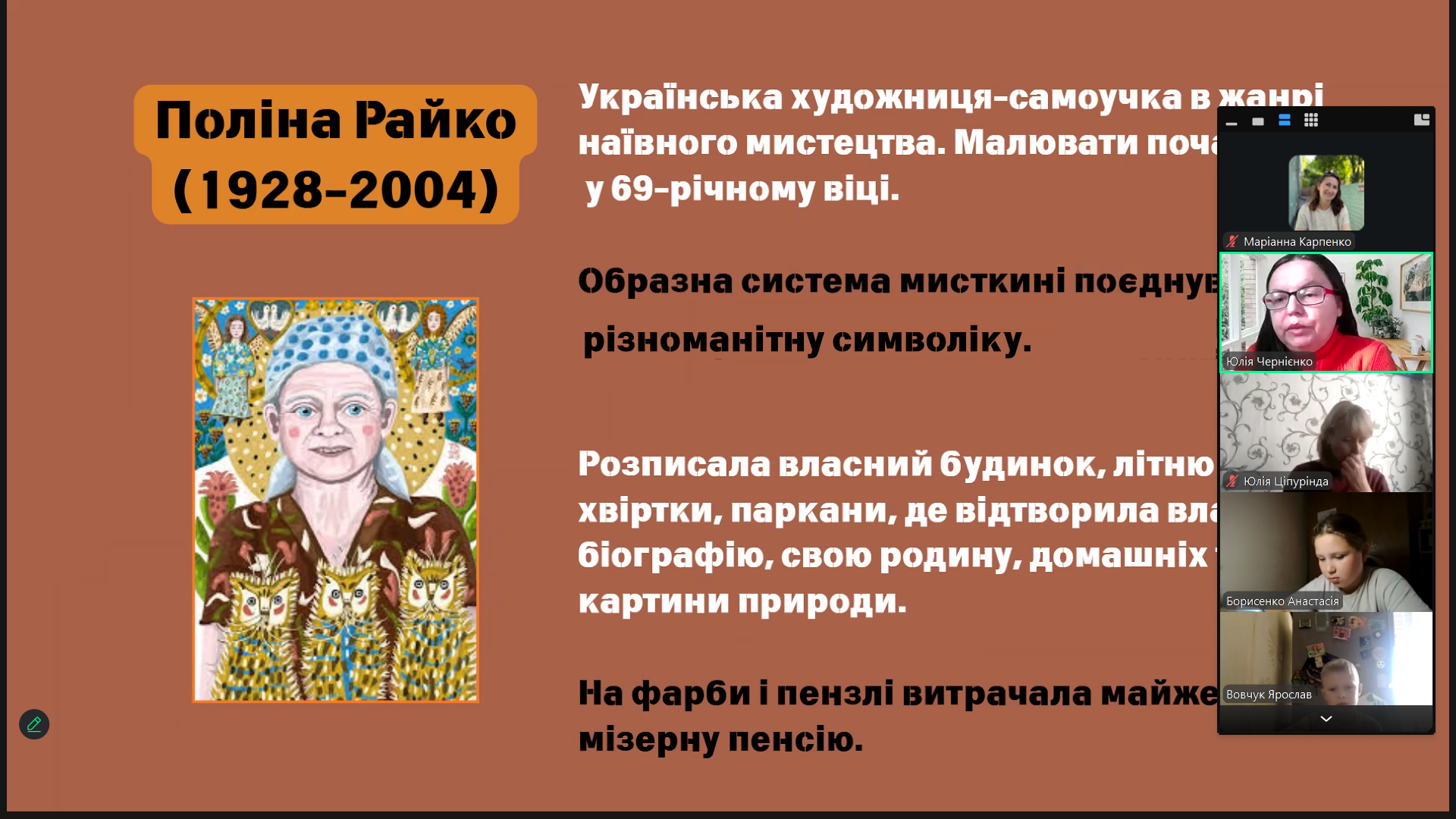 Скріншот екрану онлайн-зустрічі з титульним слайдом презентації