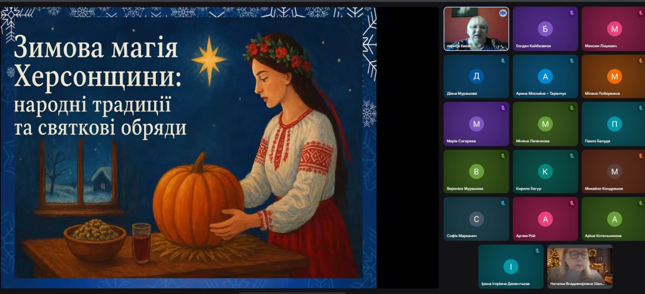 Фахівці відділу обслуговування юнацтва та молоді Херсонської обласної бібліотеки для дітей імені Дніпрової Чайки провели для учнів 7-8 класів Херсонського ліцею №6 Херсонської міської ради захопливу краєзнавчу гутірку «Зимова магія Херсонщини: народні традиції та святкові обряди».