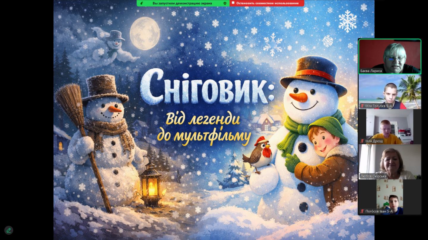 Під час заходу школярі поринули у захопливу історію виникнення одного з найулюбленіших символів зими – сніговика. Діти дізналися, що перші згадки про нього з’явилися понад 500 років тому, а створення сніговика приписують таким відомим постатям, як Мікеланджело та Франциск Асизький. Також учасникам було цікаво почути, що спочатку сніговика зображували зі злим виразом обличчя, і лише до XIX століття він «подобрішав», ставши символом Різдва, радості та зимових свят.