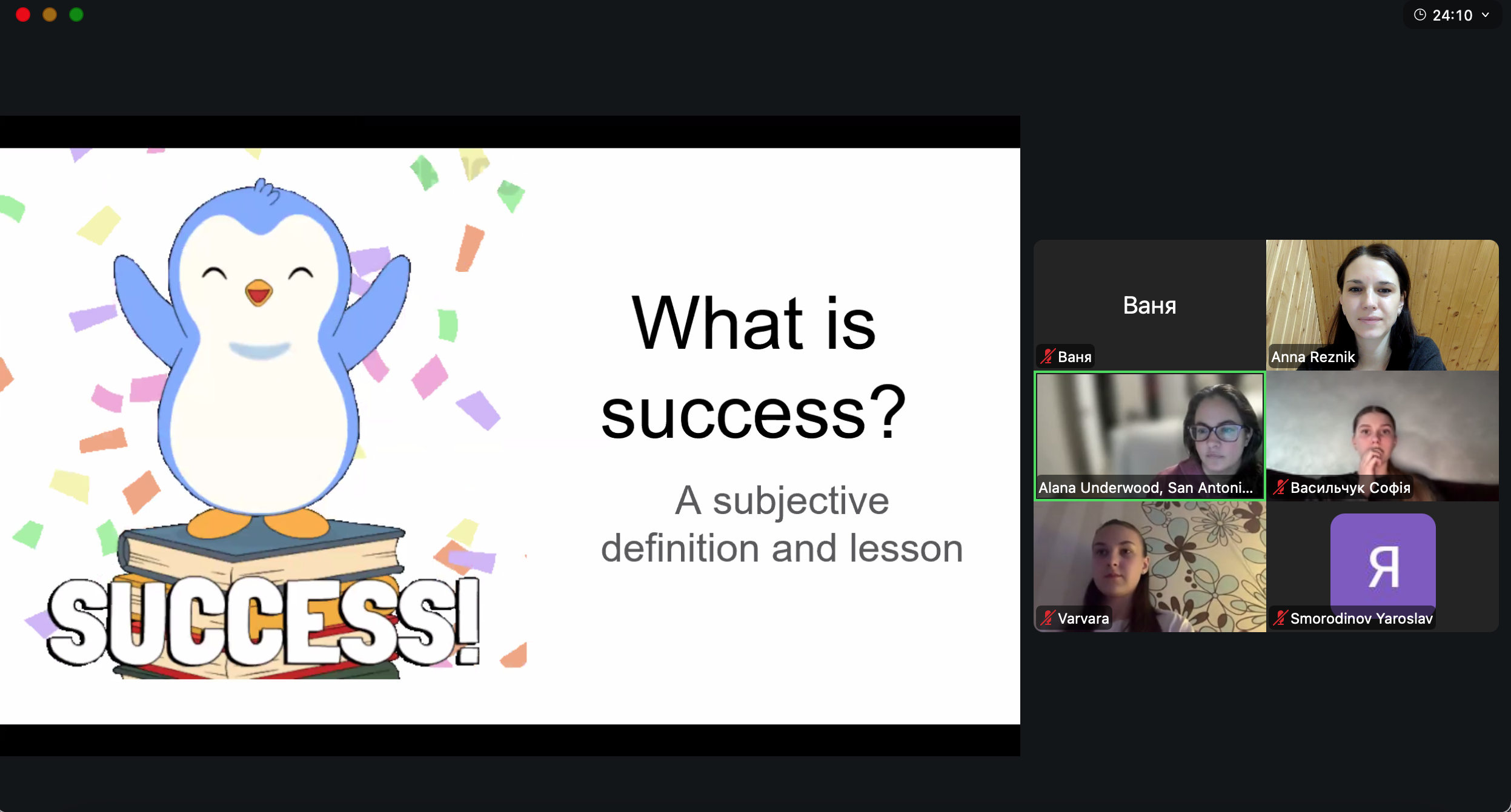 Наша молодь з Херсона та Маріуполя, яка приєдналася до сесії розмови англійською мовою, намагалася знайти визначення цього терміна. Хоча ми зустрілися онлайн, атмосфера була сповнена енергії, відкритості та справжнього зв’язку.