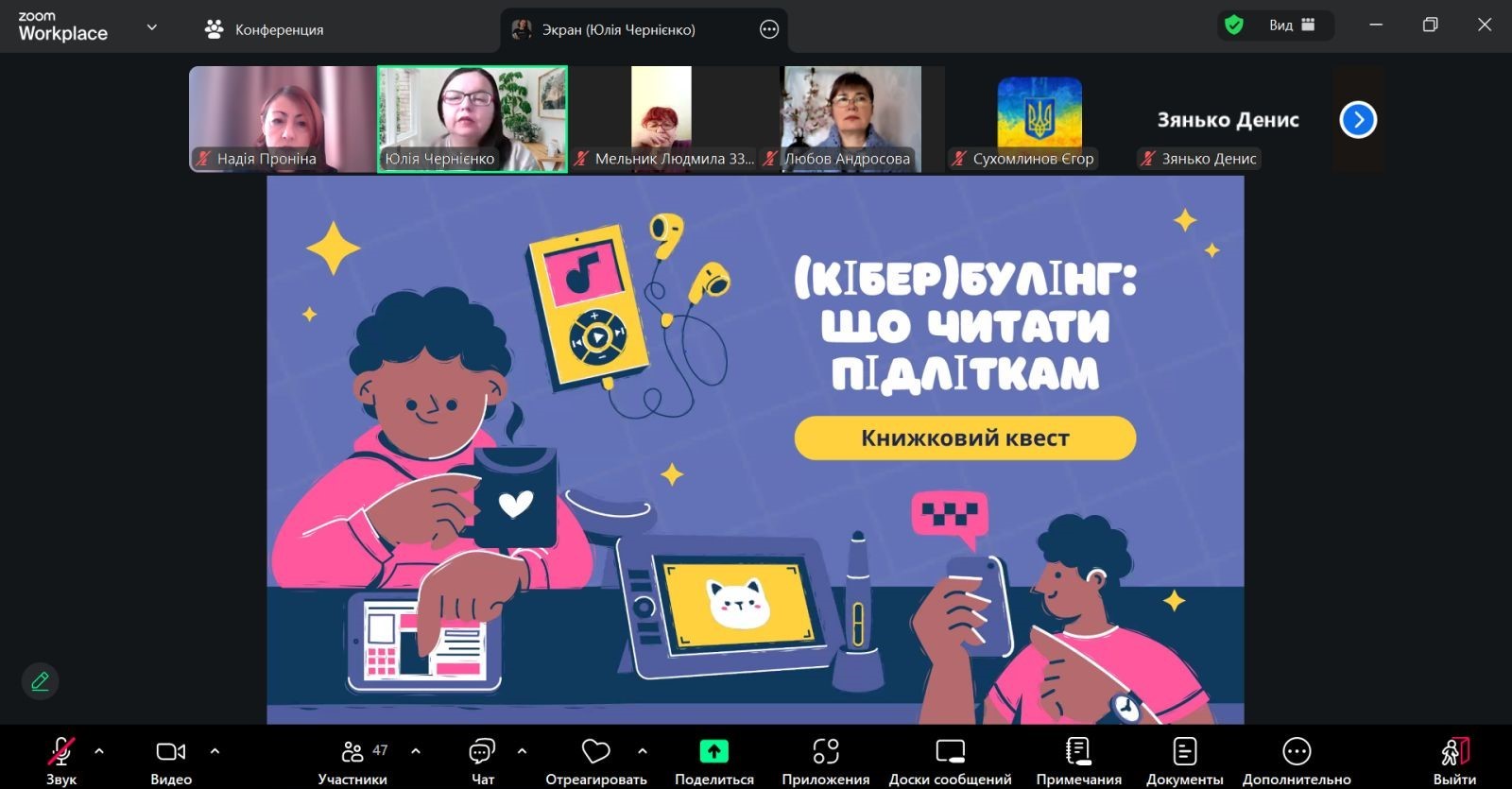 У сучасному світі підлітки проводять значну частину свого життя онлайн. Соціальні мережі, чати та ігрові платформи відкривають нові можливості для спілкування, але водночас несуть ризики – серед них кібербулінг. Саме тому до Дня безпечного Інтернету бібліотека організувала для учнів 6-8-х класів Херсонської загальноосвітньої школи І-ІІІ ступенів №50 імені Романа Набєгова, Херсонської загальноосвітньої школи І-ІІІ ступенів №53 і Таврійського ліцею інтерактивний квест «(Кібер)булінг: що читати підліткам», щоб допомогти молоді зрозуміти проблему нового часу та знайти підтримку у світі літератури.
