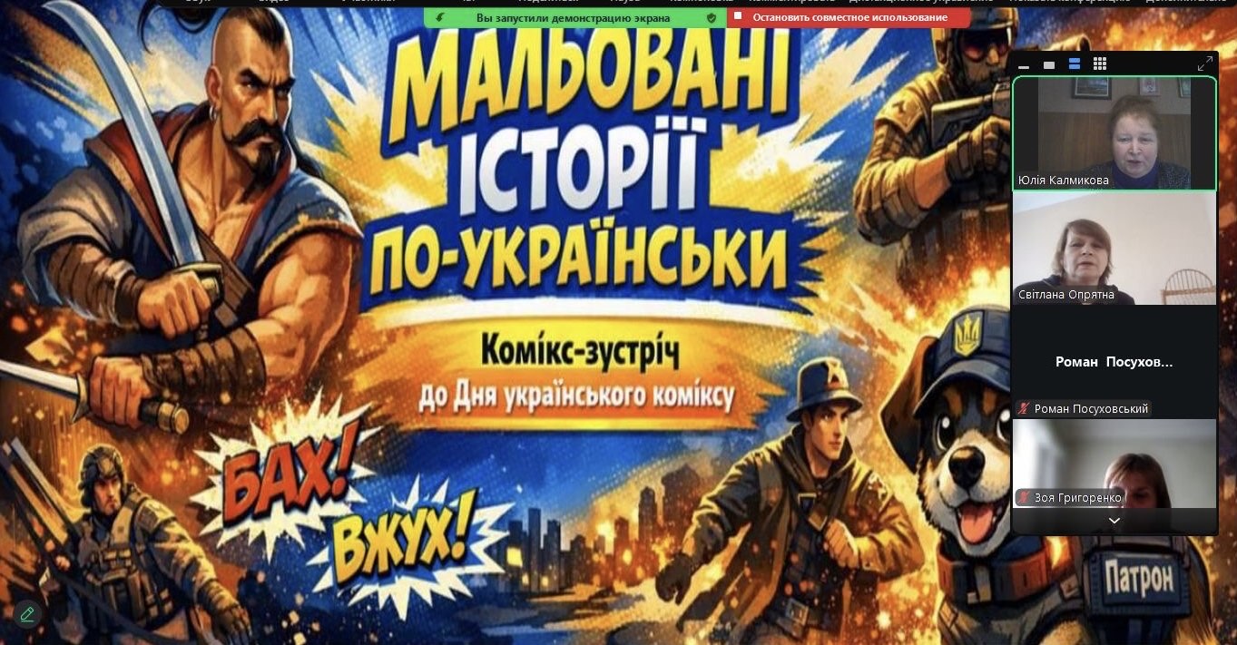 Напередодні Дня українського коміксу, який з 2021 року щороку відзначається 23 лютого, фахівці відділу естетичного виховання Херсонської обласної бібліотеки для дітей імені Дніпрової Чайки провели для учнів 5-6-х класів Херсонського загальноосвітнього навчально-виховного комплексу №48 Херсонської міської ради пізнавальну комікс-зустріч «Мальовані історії по-українськи».