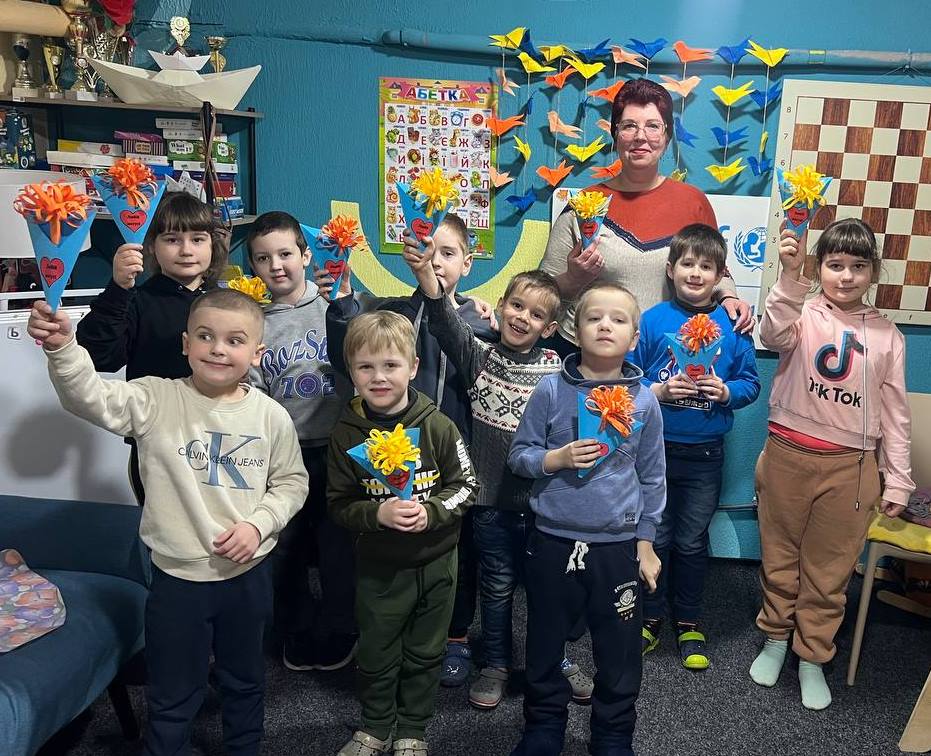 Малеча зібралася у безпечному дитячому просторі UNICEF, щоб разом наповнити сонячний березневий день радістю, грою та щирим теплом. Звичайне укриття перетворилося на маленький острівець весни, бо тут лунали дзвінкі голоси, розквітали дитячі усмішки, а повітря наповнювалося легким святковим настроєм.