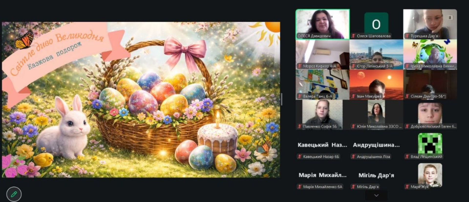 Великдень – одне з найсвітліших і найважливіших свят в українській культурі, що символізує відродження, перемогу життя над смертю, єдність родини та збереження духовних цінностей. Саме це свято об’єднує покоління, передаючи від предків до нащадків традиції, віру та любов до рідної культури. Для учнів 4-6-х класів ЗЗСО №53 було проведено пізнавальний захід у форматі казкової подорожі “Світле диво Великодня”, який допоміг дітям зануритися у чарівний світ народних звичаїв.