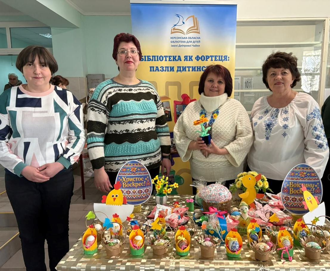 Напередодні в Херсоні відбувся Великодній благодійний ярмарок, організований Департаментом реалізації гуманітарної політики Херсонської обласної державної адміністрації з метою збору коштів для закриття потреб Збройних Сил України. До участі в благодійній акції долучились і працівники Херсонської обласної бібліотеки для дітей імені Дніпрової Чайки, підготувавши власну ярмаркову продукцію: великодні смаколики та сувеніри.