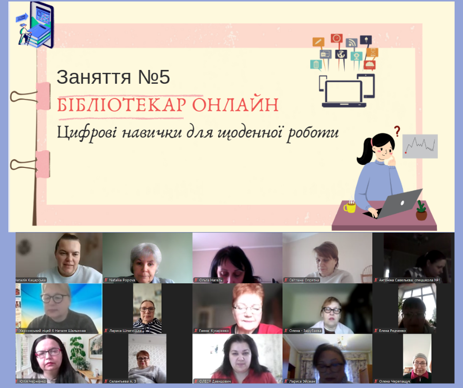 Саме темі цифрових навичок було присвячене п’яте заняття в рамках навчально-тренінгового курсу із професійного розвитку «ПрофіФайли успіху: бібліотекар нового покоління» для бібліотечних працівників закладів загальної середньої освіти Херсонської міської ради, який проводять фахівці Херсонської обласної бібліотеки для дітей імені Дніпрової Чайки.