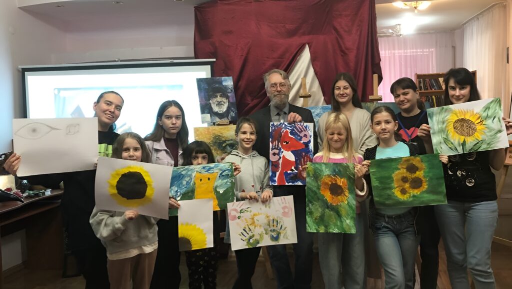 Юні учасники художньої студії «Art Kid’s», затамувавши подих, слухали прості й водночас мудрі поради майстра. Він закликав бути розкутими й не боятися помилятися, сміливо використовувати для втілення ідей підручні предмети та бачити у навколишньому світі власний шлях і покликання.