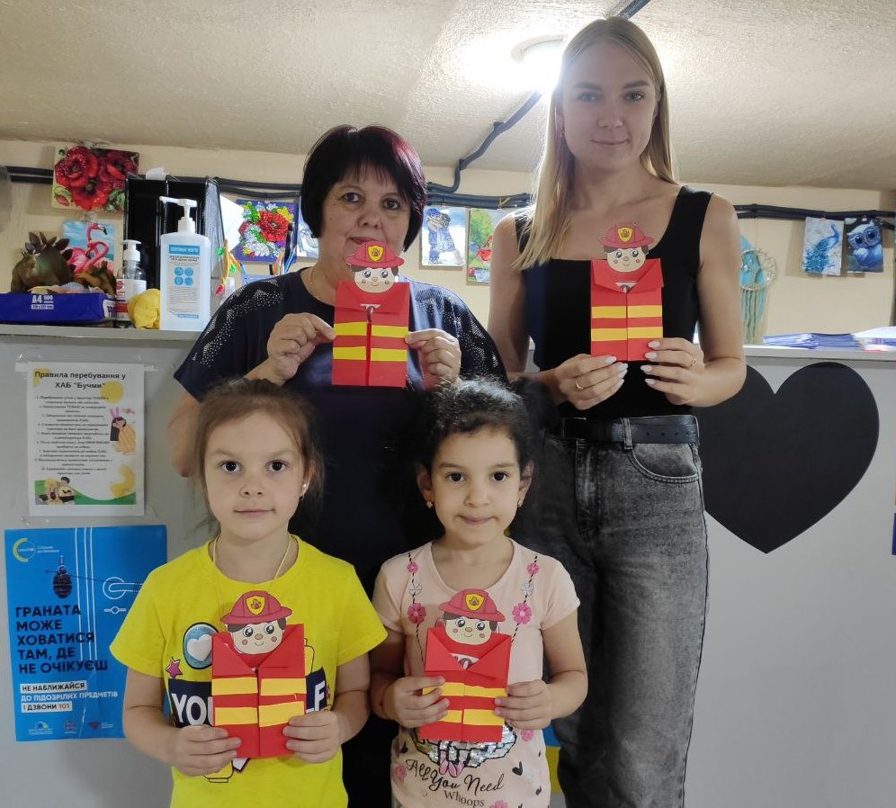 Учасники заходу з виготовленими поробками - "пожежниками-нагадувачами"