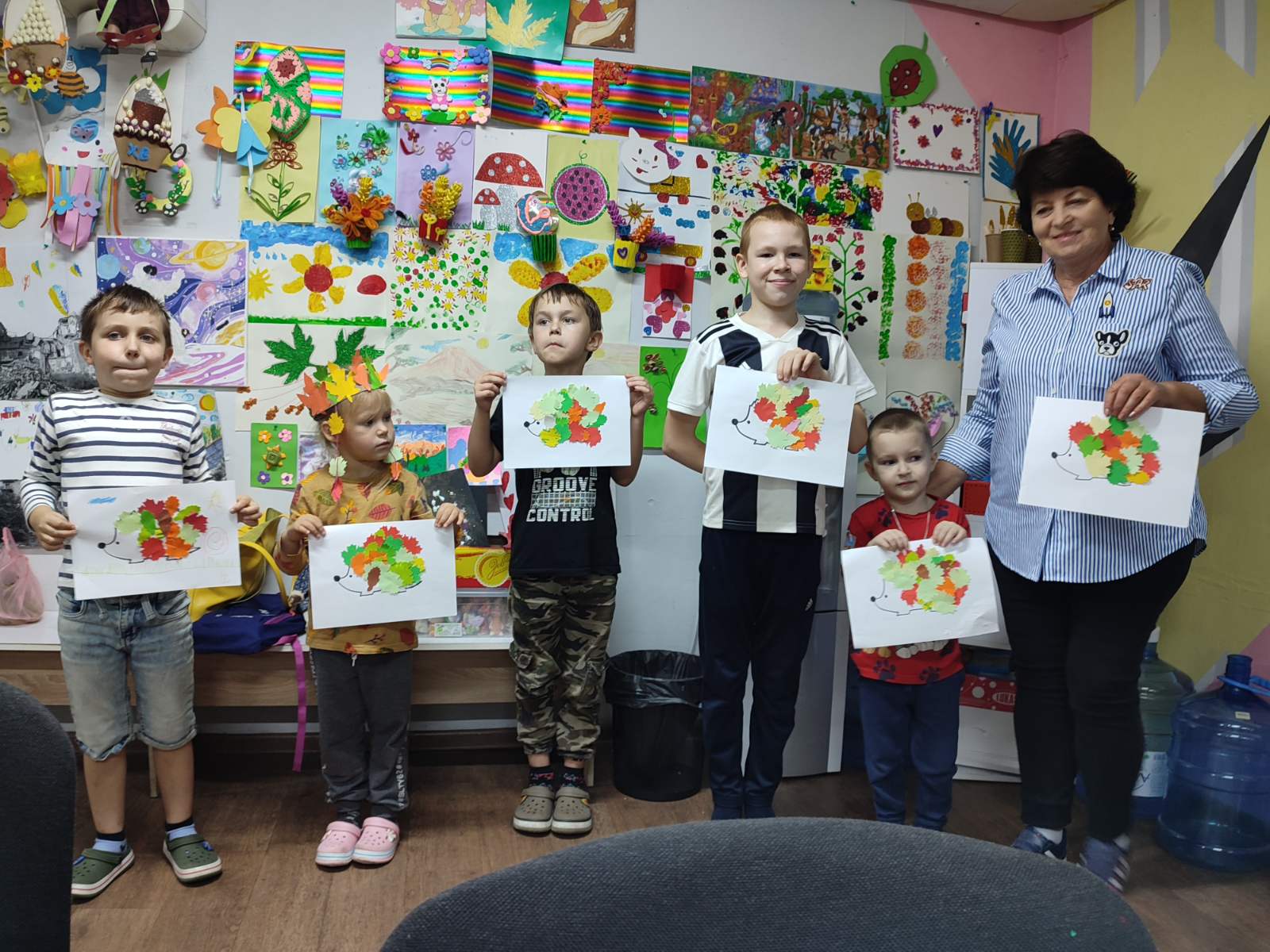 Учасники програми зі своїми творчими роботами, створеними з паперового "осіннього листя"