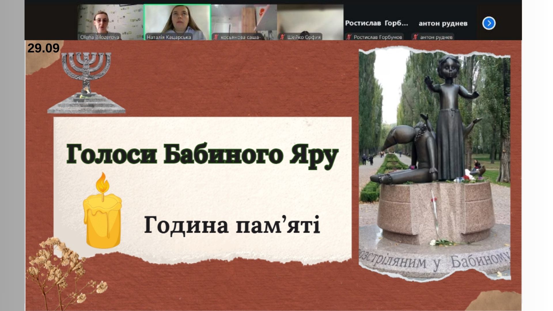 Скріншот екрану заходу онлайн до 84-х роковин трагедії Бабиного Яру
